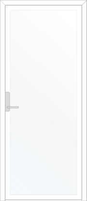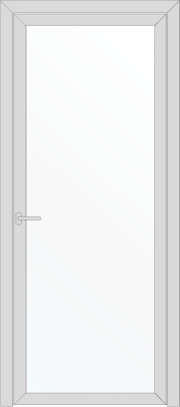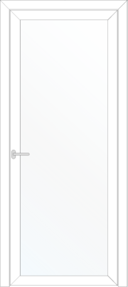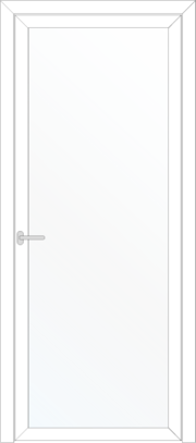 En massivdør er en god løsning, når der ønskes materiale-mæssig kontrast til den lette glasvæg. Dørbladet er i træ og fås som standardfarve i hvid NCS 0502Y. Der kan også vælges specialfarve.