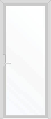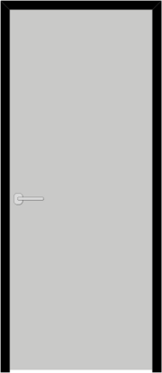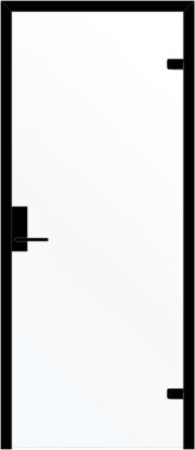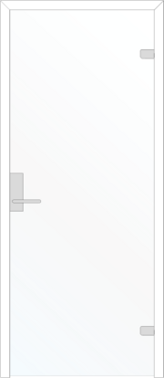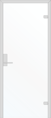 Dørbladet består af to lag glas monteret på udvendig side af ramme. Rammen er usynlig, da glasset har en smal matteret kant svarende til rammens bredde, hele vejen rundt.