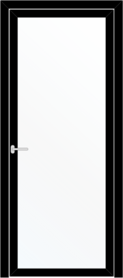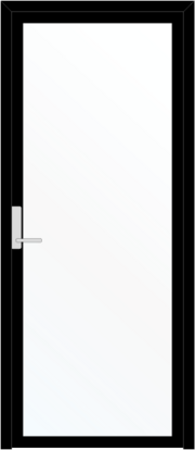 Dørbladet består af en glasplade monteret i en alu-ramme.