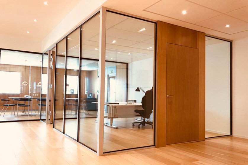 Døren kan monteres i alle varianter af TRIPLAN LITE® glasvægssystemet.