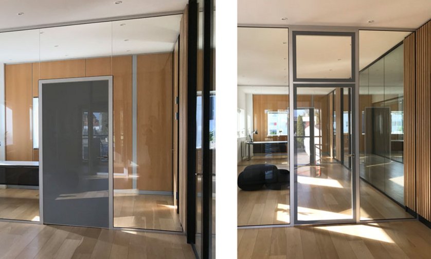 Glasdøren med to lag glas – glasrammedøren – er et eksklusivt produkt med et minimalistisk udtryk. Døren kan monteres i  glasvægssystemet TRIPLAN LITE® 34 – 43 dB.