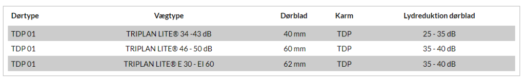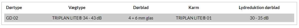 Falsede massivdøre er den ideelle løsning, når der er høje krav til lydreduktion. Dørbladet er i massivt træ og med gulvdørtætning opnås endnu bedre lyddæmpning. Dørbladet fås som standardfarve i hvid NCS 0502Y. Der kan også vælges specialfarve.