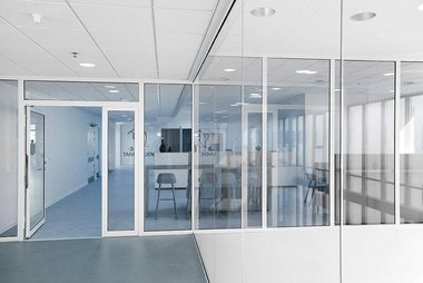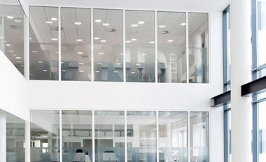 TP FIRE A, robust brandvæg i glas med rammer i aluminium