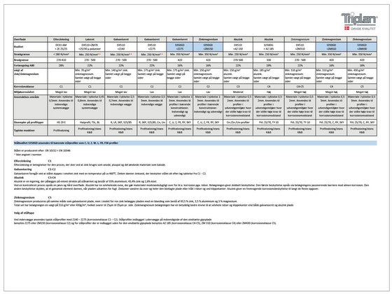 Triplan ståloversigt viser de ståltyper, Triplan benytter i produktionen.*