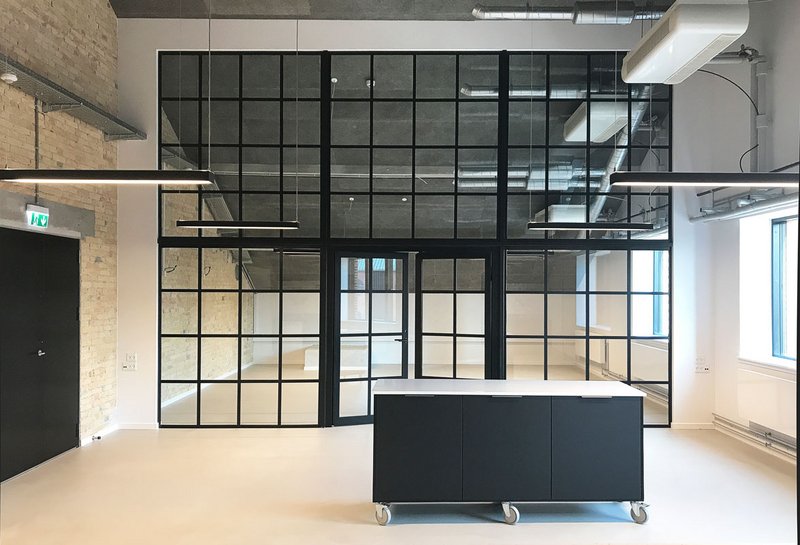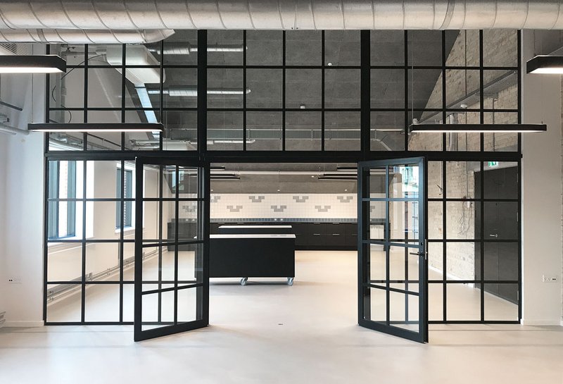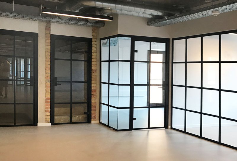 Samtlige kontoretager er indrettet i New Yorker stil med glasvægge i Triplan glassystemet TRIPLAN LITE® | NEW YORK, hvilket understreger den rå stil med historiske undertoner. Kantinen og det store mødelokale adskilles af et specielt designet glasparti i rummets fulde højde og bredde.