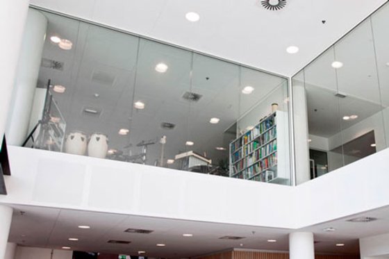 Glaspartierne leveres som hærdet og/eller lamineret glas i tykkelser op til 12,76 mm, afhængig af det ønskede lydkrav. Samlinger i glasvæg udføres som standard med 2 mm dobbeltklæbende glastape. Alternativt anvendes 5 mm fugesamling.