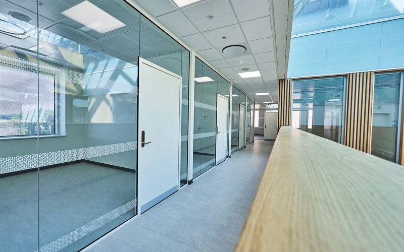 Med en TRIPLAN LITE®  |  34 – 43 dB  |  ALU glasvæg bevares transparens, åbenhed og fleksibilitet i indretningen med en smuk og enkel løsning. Glasset er i tykkelser fra 10 – 21 mm afhængig af lydkrav og væggens højde.