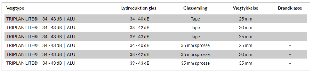 TRIPLAN LITE®  |  34 – 43 dB  |  ALU-detaljetegninger. Kontakt venligst Triplan.