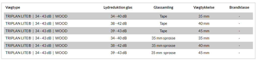 TRIPLAN LITE®  |  34 – 43 dB  |  WOOD-detaljetegninger. Kontakt venligst Triplan.