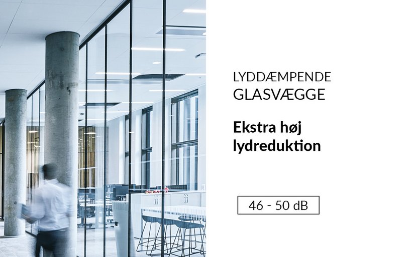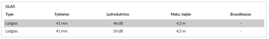 • Lydreduktion afhænger af hvilken glastype og hvilken tykkelse glas, der benyttes.