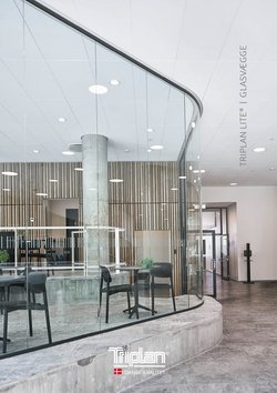 Enkle glasvægge med ekstra høj lydreduktion. TRIPLAN LITE® | 46 – 50 dB er glasvægsløsningen med design og funktionalitet i ét design. Væggen har et let og elegant udtryk og yder samtidig ekstra god lyddæmpning. TRIPLAN LITE® | 46 – 50 dB er med ét lag glas, fastholdt i profiler i top, bund og side. Glassene samles med smalle sprosser eller med fugede samlinger.