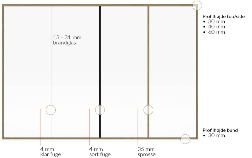 • Transparente glaskanter og -fuge, så væggen fremstår med samme lette udtryk som de ikke klassificerede glasvægge.